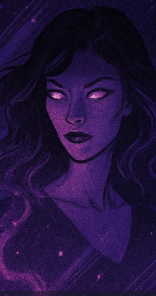 Sitting up, she went to her bedroom and holding up her candle to the mirror, looked into her own eyes. A cold glint of fuchsia lit up her hollow stare. She was….different…..